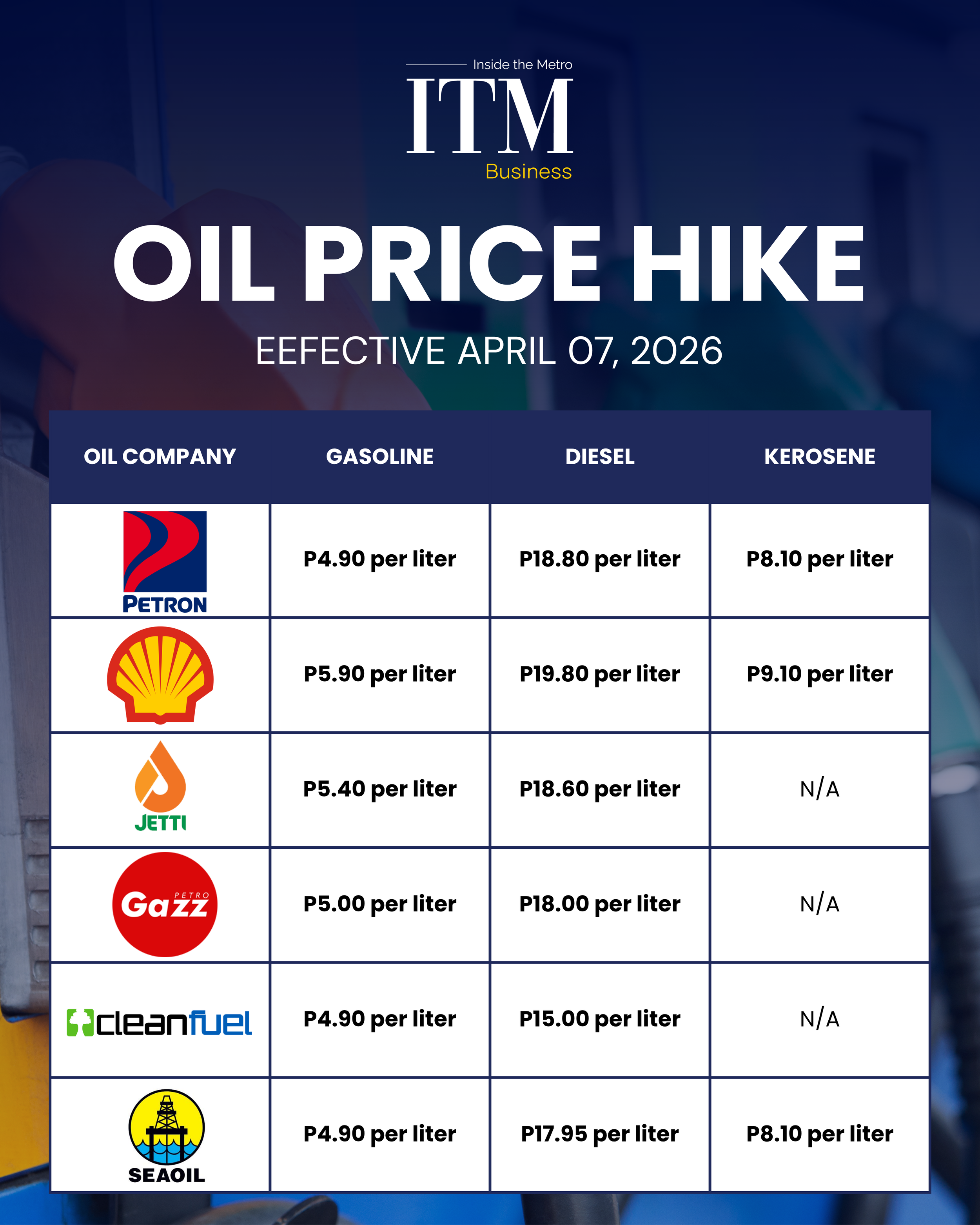 METRO MANILA — Motorists across the Philippines woke up to a staggering reality today, April 7, 2026, as oil companies implemented a massive double-digit price hike. The adjustment, driven by escalating geopolitical tensions in the Middle East, marks the fifth consecutive week of increases, pushing fuel costs to near-historic levels.