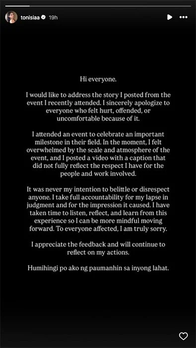 "I sincerely apologize to everyone who felt hurt, offended, or uncomfortable... It was never my intention to belittle or disrespect anyone," she wrote in a follow-up post.